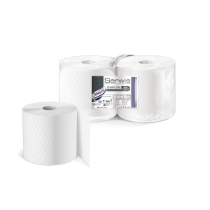 Zastosowanie: produkty SERWIS to czyściwa przemysłowe z linii PuraLine wykonane w 100% z celulozy o specjalnej mieszance. Dzięki zastosowanej technologii tłoczenia papieru przez 4 stalowe wałki gofrujące uzyskano produkt wyjątkowy pod względem właściwości użytkowych, ale także wizualnych. Perfekcyjny system klejenia warstw w połączeniu z odpowiednim gofrowaniem papieru sprawiły, że produkt jest bardzo mocny. Ważną cechą czyściwa jest to, że nie pyli podczas użytkowania i ma zastosowanie w wielu wymagających czynnościach porządkowych. Podobnie jak ręczniki przemysłowe czyściwo SERWIS ma białą, ale jeszcze grubszą i mocniejszą tulejkę, oraz ozdobne romby z zewnętrznej strony wstęgi, które tworzą produkt wizualnie bardzo elegancki.