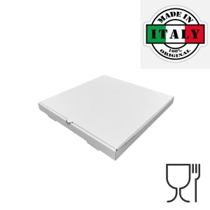 Zastosowanie: pizza jest jedną z najbardziej lubianych potraw na każdej szerokości geograficznej. Część swojego sukcesu pizza zawdzięcza możliwości wygodnego delektowania się nią w domu, dzięki pudełkom do pizzy na wynos, które świetnie nadają się do transportu, chronią zapach, aromat i smak pizzy. Oferowany karton na pizzę 45 x 45 cm wykonany jest z tektury falistej na bazie włókien celulozowych. Dzięki temu karton na pizzę może być stosowany do bezpośredniego kontaktu z żywnością czyli bez konieczności wykładania kartonu pergaminem lub innym podkładem. Pudełka na pizzę 45 x 45 cm wykonane w 100% z roślinnego kartonu mają wiele zalet w porównaniu z kartonami wykonanymi z makulatury. Pierwszą zaletą oferowanych kartonów na pizzę jest to, że tektura jest w 100% roślinna i ulega szybkiej biodegradacji. Oznacza to, że prawidłowo zutylizowany karton na pizzę rozkłada się biologicznie, szybko i nie szkodzi otaczającemu środowisku. Z drugiej strony klasyczne pudełka na pizzę wykonane z makulatury, jeśli nie zostaną prawidłowo zutylizowane, mogą rozkładać się latami, powodując negatywny wpływ na środowisko przez wyraźnie dłuższy okres czasu. Ta cecha jest szczególnie ważna w przypadku pudełek na pizzę na wynos, ponieważ muszą one być wystarczająco wytrzymałe, aby utrzymać ciężar pizzy i wystarczająco wytrzymałe, aby chronić je przed wilgocią. Ponadto karton jest porowatym materiałem, który pozwala pizzy oddychać, dzięki czemu jest tak smaczna jak w pizzerii. Na kartonach na pizzę 45 x 45 cm możemy wykonać nadruk indywidualny.