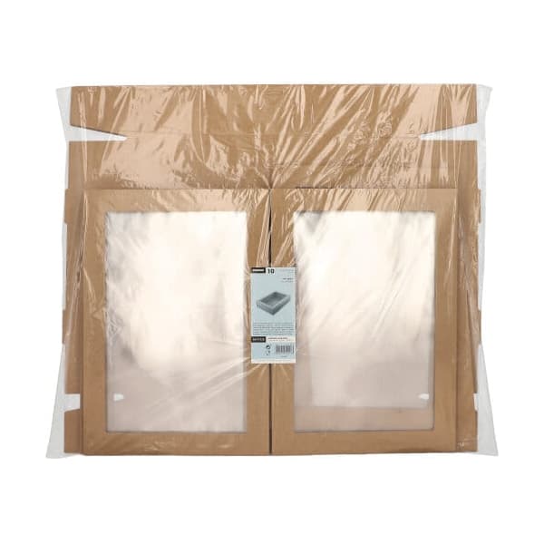 - materiał pokrywy: tektura lita (okienko PET)