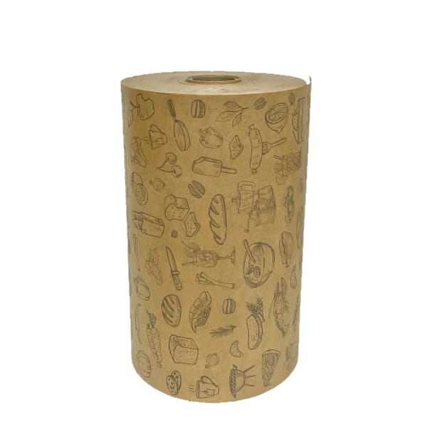 Papier pakowy kraft powlekany PE nadruk ŻYWNOŚĆ - szer. 35 cm - 10 kg/rolka
