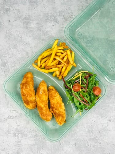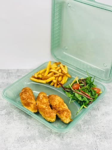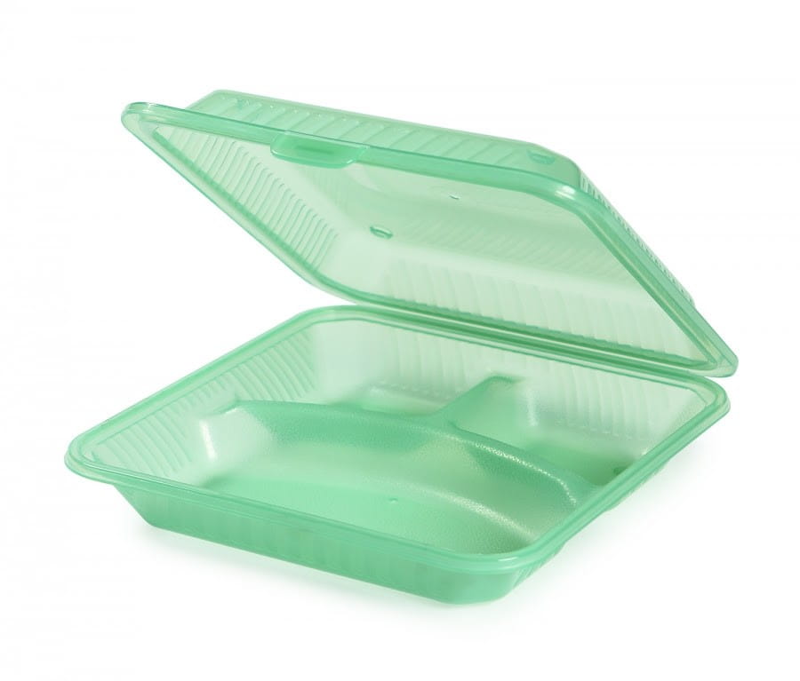 Zastosowanie: pojemnik 3 komorowy wielokrotnego użytku to ekologiczna alternatywa do jednorazowych pojemników. Pojemnik 3 komorowy 23 x 23 x 7,6 cm wykonany jest z bardzo wytrzymałego polipropylenu jego żywotność wynosi do 1000 cykli w zmywarce. Pojemnik obiadowy wielokrotnego użytku dzięki wygodnemu zatrzaskowi zabezpiecza przed wyciekaniem. Tworzywo, z którego wykonany jest pojemnik 23 x 23 x 7,6 cm umożliwia podgrzewanie żywności w kuchence mikrofalowej. Pojemniki nie nadają się do gotowania i mrożenia. Dzięki pojemnikom wielokrotnego użytku transport posiłków jest łatwy i bezpieczny.