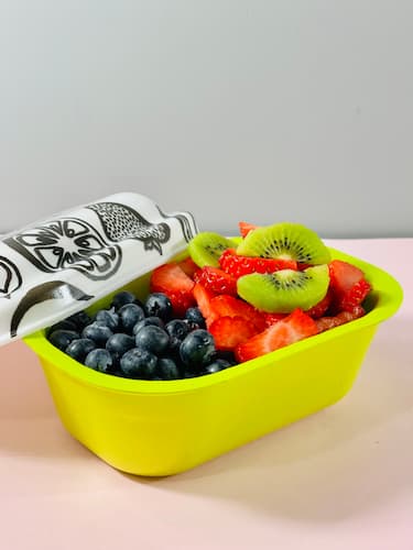 Zastosowanie: FunnyGel to pojemnik termiczny na lody, który nie może zostać niezauważony. Przełamuje monotonię bieli i przynosi radość swoją grafiką i żywą kolorystyką. Podobnie jak klasyczne białe pojemniki styropianowe jest praktyczny, bezpieczny w użytkowaniu oraz zapewnia odporność termiczną. Stylistyka pojemnika styropianowego na lody 500 ml FunnyGel doda nowoczesności każdej lodziarni. Podstawa pojemnika jest w kolorze limonkowej zieleni, uzupełniony białą pokrywą przedstawiającą owoce egzotyczne i tropikalne. Pojemniki styropianowe na lody ml to przyjemna dla oka, przynosząca radość i zapachy lata alternatywa dla tradycyjnego białego pojemnika. Polistyren, z którego wykonany jest pojemnik termiczny na lody jest wytrzymały a praktyczne zamknięcie gwarantuje maksymalną stabilność i komfort w transporcie. Styropianowy pojemnik na lody 500 ml Funny Gel ma prostokątny kształt z zaokrąglonymi rogami, daje to efekt elegancji i świeżości. Wygodna pokrywa pozwala na spożywanie lodów w dowolnej chwili i wielokrotne zamykanie pojemnika. Pojemnik styropianowy na 500 ml lodów w kolorze limonkowej zieleni i owoców tropikalnych jest idealny do transportu mrożonych produktów takich jak jogurt, lody, musy. Pojemniki termiczne Funny gel 500 ml dzięki swej wszechstronności może być również stosowany do produktów niezwiązanych ze światem lodów. Może posłużyć jako pojemnik na sałatki, kanapki i małe przekąski.
