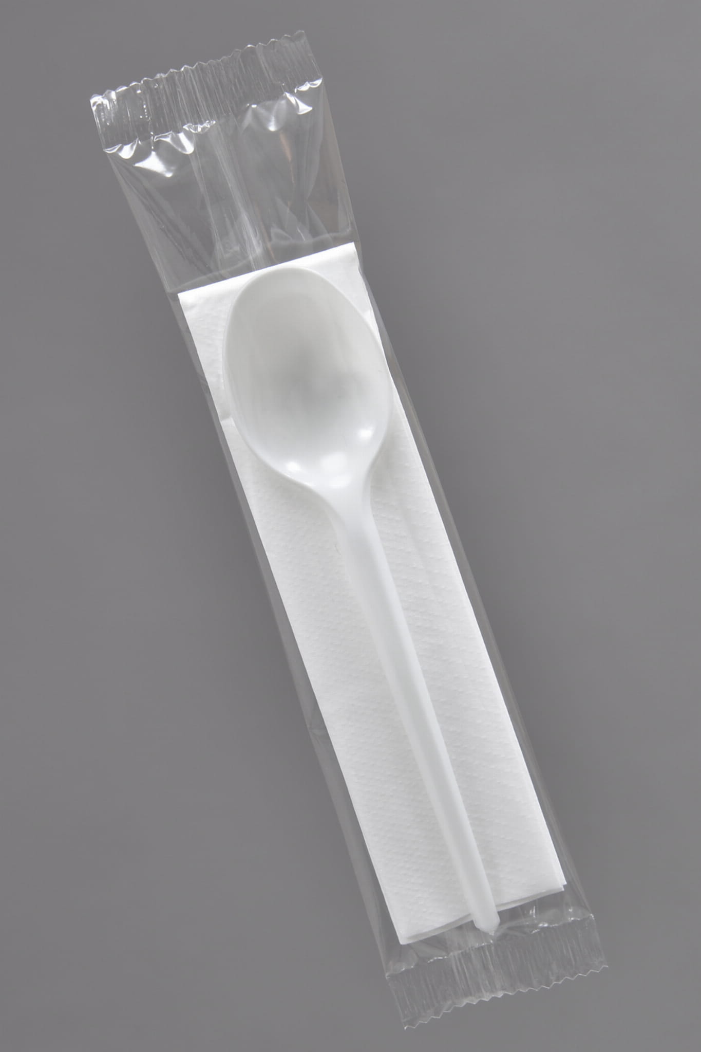 Zestaw foliowany biały łyżka + serwetka - pakowane pojedynczo