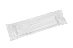 Zestaw foliowany biały widelec + nóż + serwetka - pakowane pojedynczo
